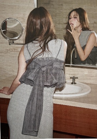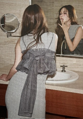 심플한 니트 원피스에 뷔스티에 스타일의 탑을 매칭하여 섹시함과 세련된 무드를 연출할 수 있습니다.