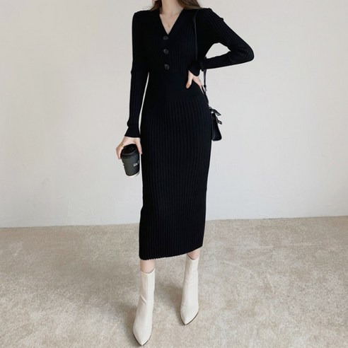 반면, 슬림한 핏의 니트 롱 원피스는 실루엣이 드러나는 것 때문에 도전하기가 여간 쉽지 않은 스타일이기도 합니다.