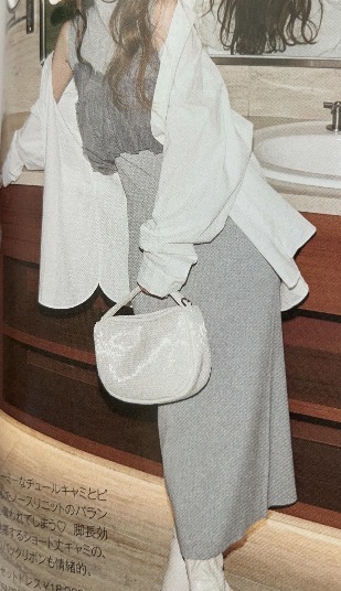 슬림한 롱 니트 원피스의 단독 스타일링이 밋밋하다면 목걸이, 귀걸이로 포인트를 더해 주거나 컬러 포인트가 되는 백을 매치해도 좋습니다.