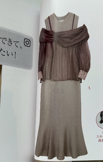 시스루 스타일의 오프숄더 탑 + 롱 니트 원피스 레이어링